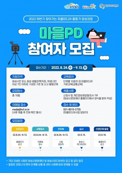 이번 모집은 화성시민이거나 생활권역이 화성시인 학생, 직장인이라면 누구나 지원 가능하며 9월 13일까지 이메일로 신청 접수를 받는다.