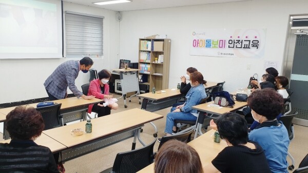 안전교육은 동두천소방서 재난예방과와 협업해 심폐소생술, 하임리히법 등을 직접 몸으로 익히도록 해 아이돌보미가 실제상황에서 당황하지 않고 응급조치를 잘 할 수 있도록 실질적 체험교육을 바탕으로 진행됐다.