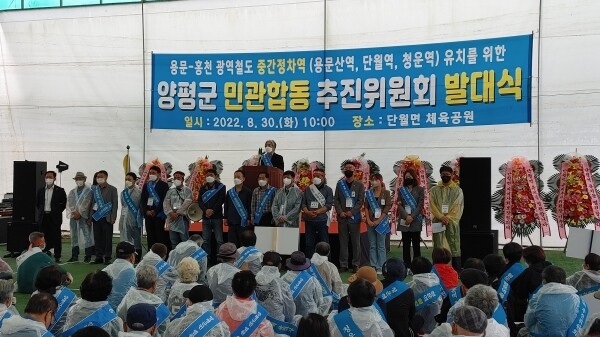 이날 발대식에는 전진선 양평군수와 윤순옥 양평군의회 의장을 포함한 군의원, 이혜원 도의원, 홍천군의회 의원 등 내빈과 단월면, 청운면, 용문면 주민 등 약 250여명이 참여한 가운데, 내빈 소개, 국민의례, 축사, 결의문 낭독, 구호제창, 축하공연, 가두행진 순으로 진행됐다.