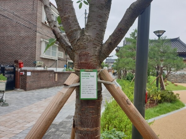 수원시는 준공·하자 검사가 진행되는 모든 공공 발주 공사에서 식재· 이식하는 수목에 ‘다함께 그린태그’를 부착해 실명제를 도입했다.