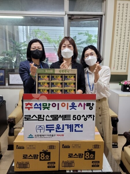 [뉴스써치] 인천 미추홀구 소재 기업 ㈜두원계전은 인천 미추홀구 학익2동 행정복지센터에 이웃을 위해 로스팜 선물세트 50개를 기탁했다.