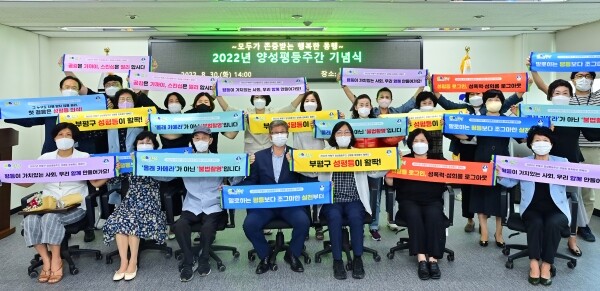 이어 네트워크 기관, 여성 단체 등 구민 50여명과 함께 양성평등 문화 확산을 위한 양성평등 실천 결의를 다짐하는 시간을 가졌다.
