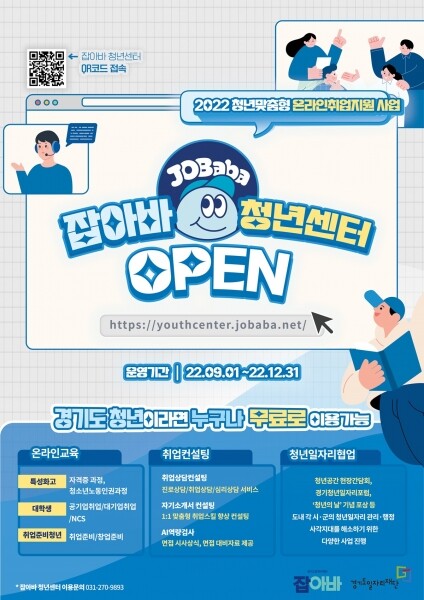 ‘잡아바 청년센터’는 경기도 내 직업계 고등학교 및 재학생, 취업을 준비하는 청년구직자를 대상으로 무료 온라인 교육, 취업컨설팅 제공, ‘경기도 청년 일자리협업단’과 청년을 위한 다양한 일자리 정책 정보제공 등의 서비스를 제공한다.