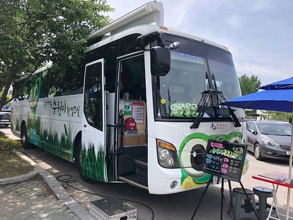 수원이 환경교실 버스는 생태 체험이 가능하도록 대형버스를 교육 시설로 개조한 이동형 환경교실 버스다.