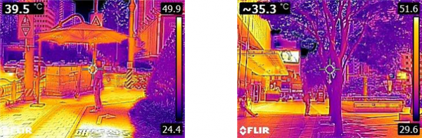 즉 가로수가 그늘막보다 표면온도 7℃ 더 낮아 열 저감에 25% 더 효과적인 것으로 분석됐다.