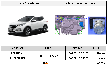 첫째, 현대자동차㈜에서 제작, 판매한 싼타페 등 2개 차종 185,523대는 전자제어 유압장치 내부 합선에 의해 화재가 발생할 가능성이 확인됐고 아반떼 N 2개 차종 125대는 조향핸들 엠블럼의 부착 공정 불량으로 에어백 전개 시 엠블럼이 이탈되고 이로 인해 운전자가 상해를 입을 가능성이 확인되어 자발적으로 시정조치에 들어간다.