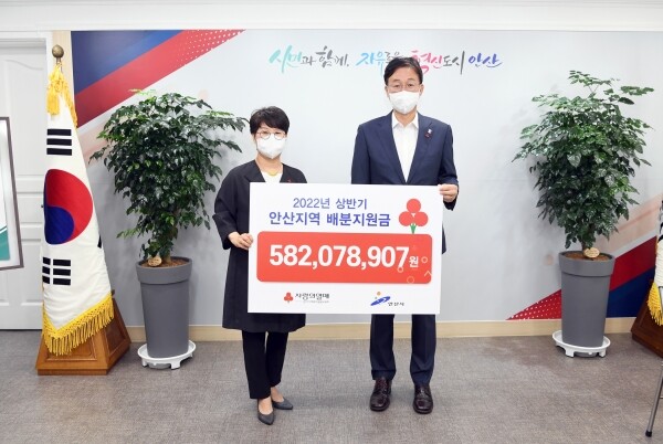 이날 안산시청에서 진행된 기탁식에는 이민근 안산시장, 최은숙 경기사회복지공동모금회 사무처장 등이 참석했다.