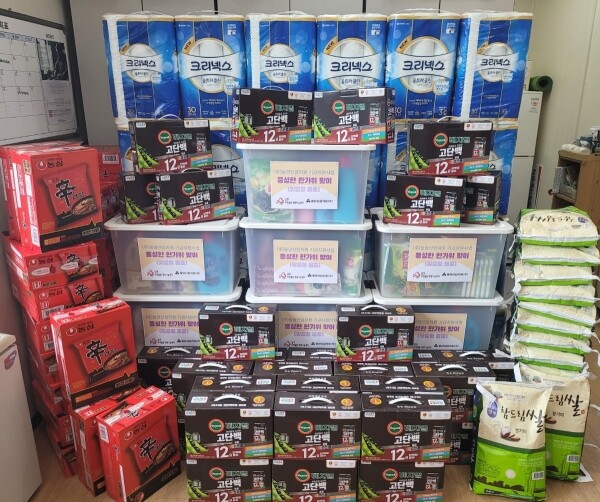 특히 이번 추석은 집중호우로 어려움을 겪는 저소득 취약계층 세대를 중심으로 휴지, 두유, 각종 생필품, 식품류를 구매해 총 156세대에게 전달했다.