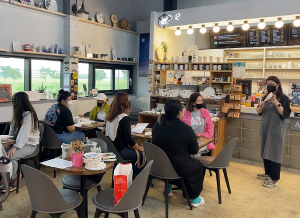 사전에 선착순으로 프로그램 참가 접수를 한 25명은 이날 공방카페인 아르떼나인으로 개별 집합 후 도자기 페인팅 공예 수업을 받으며 소통의 시간을 가졌다.