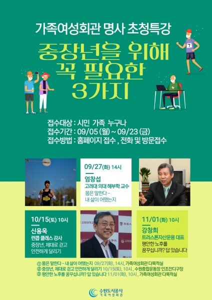 1일 공사에 따르면 명사 초청 특강 시리즈는 중장년의 생애주기별 맞춤형 교육의 확대와 행복한 노후 준비를 통한 평등한 가족문화 확산을 위해 추진됐다.