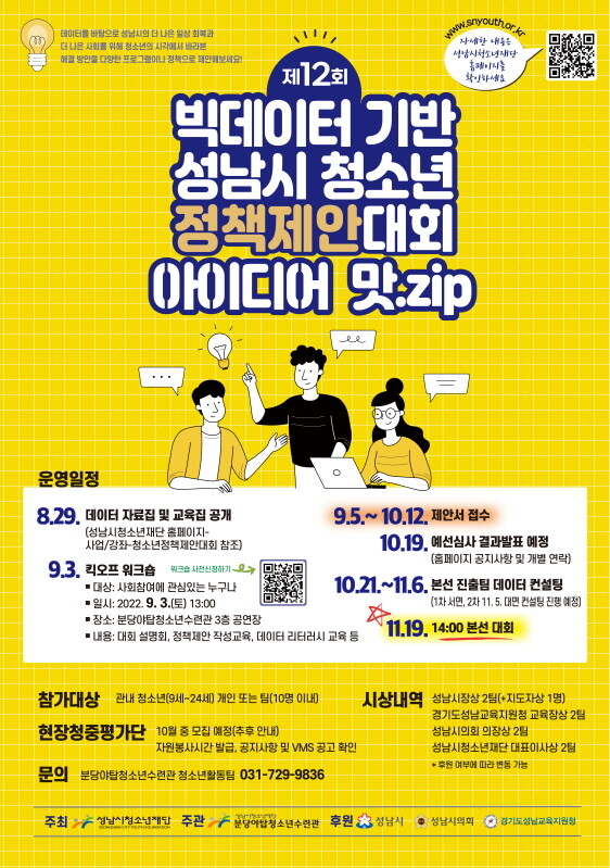 또한, 9월 3일 킥오프 워크숍을 통해 대회 설명회, 사회참여와 정책제안서 작성 교육, 데이터 리터러시 교육을 제공해 청소년들의 사회참여 장벽을 낮출 수 있도록 지원한다.