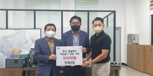 창대산업은 매년 관내 어려운 이웃들을 위해 써 달라며 성금과 물품 기탁을 실천하고 있다.
