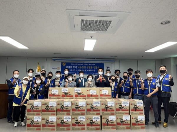 이에 이윤주 동구동장은 “즐거운 한가위를 맞아 우리 주변 어려우신 분들을 위해 라면을 지원해주신 로타리클럽 모든 회원분들께 감사의 말씀을 드린다 소중한 후원물품을 대상자에게 잘 전달 한다”고 화답했다.