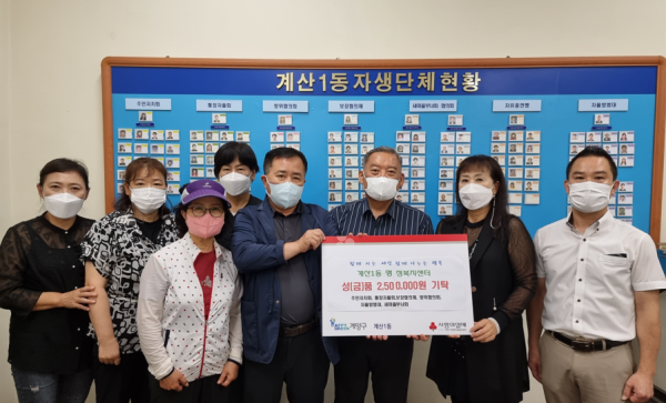 계산1동 주민자치회, 통장자율회, 방위협의회, 보장협의체, 자율방범대, 새마을부녀회 회원들이 십시일반 정성을 모아 성금을 마련했다.