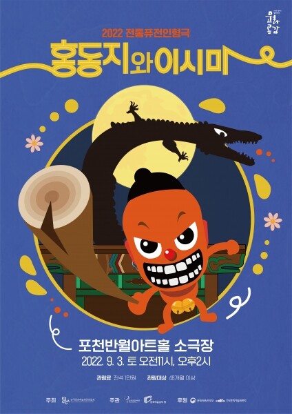 어린이 인형극 ‘홍동지와 이시미’ 공연은 9월 3일 토요일 11시, 오후 2시 총 2회차에 걸쳐 포천반월아트홀 소극장에서 개최될 예정이며 전석 1만원으로 만 48개월 이상부터 관람할 수 있다.