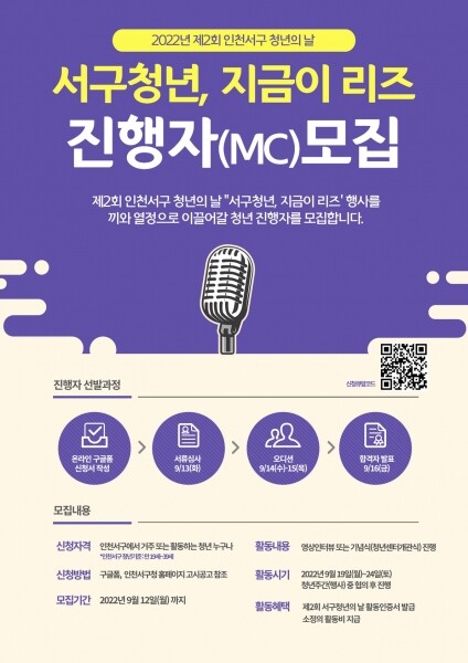‘청년 진행자’ 신청 기간은 오는 12일까지이며 서구에서 거주하거나 활동하고 있는 청년 모두에게 열려있다.