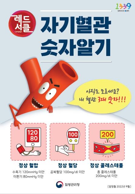 ‘자기혈관 숫자알기, 레드서클 캠페인’은 자신의 혈압과 혈당, 콜레스테롤 수치를 알고 알맞게 관리해 건강한 혈관인 ‘레드서클’로 심뇌혈관질환을 예방하자는 의미의 전국단위 합동 캠페인 슬로건이다.