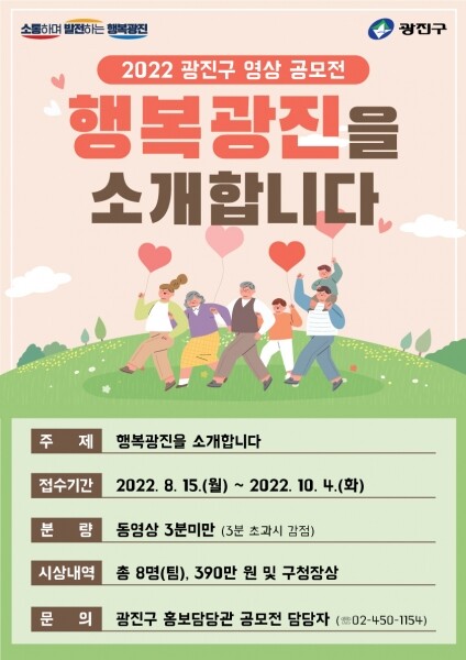 김경호 광진구청장은 “구민이 직접 광진구를 소개하는 만큼 참신하고 우수한 작품이 많이 나올 것으로 기대된다”며 “많은 분들이 참여하셔서 광진구의 행복한 모습을 전해주길 바란다”고 말했다.