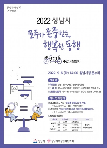 양성평등주간 기념식은 오는 9월 6일 오후 2시 시청 온누리에서 300여명이 참석한 가운데 열린다.
