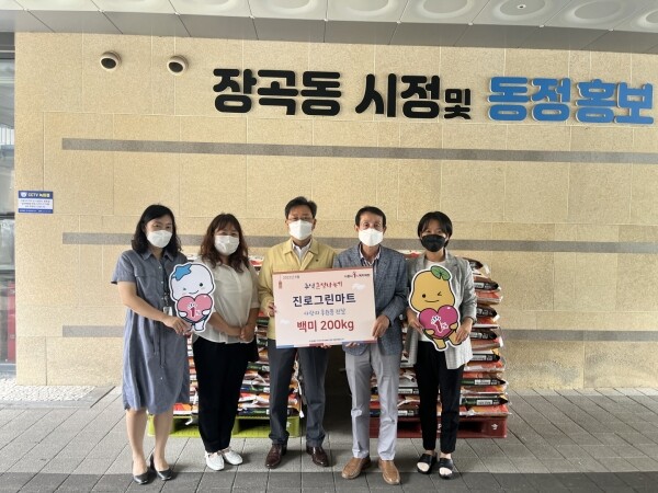 이날 전달식은 장곡동 동장과 진로그린마트 이사, 1%복지재단 관계자가 참석해 진행됐다.