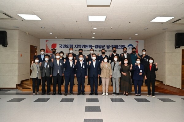 당정협의회에는 전진선 양평군수를 비롯한 간부공무원과 김선교 국회의원, 윤순옥 양평군의회 의장, 이혜원 도의원, 황선호 양평군의회 부의장, 송진욱 양평군의회 의원, 지민희 양평군의회 의원, 오혜자 양평군의회 의원 등 30여명이 참석해 정책 방향 공유와 협력을 강화해 나가기로 힘을 모았다.