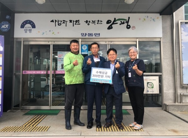 [뉴스써치] 양동면 소재 양평부추영농조합법인은 지난 31일 집중호우로 인한 수해 피해 가구 지원에 사용해 달라며 이웃돕기 성금 300만원을 기탁했다권성춘 대표는 “갑작스러운 수해로 어려움을 겪고 계신 주민들에게 조금이나마 도움이 되길 바라는 마음을 담아 보았다”며 “조속히 수해 피해 복구가 이루어져 주민들의 일상이 빠르게 회복되길 기원한다”고 전했다.