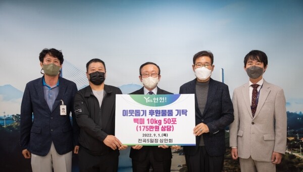 전곡5일장 상인회 기호철 회장은 “코로나19 장기화로 운영에 어려움이 많았지만 회원들의 마음과 정성을 담아 준비한 후원물품으로 관내 소외된 이웃들이 풍성한 한가위를 보내시길 바란다”고 말했다.