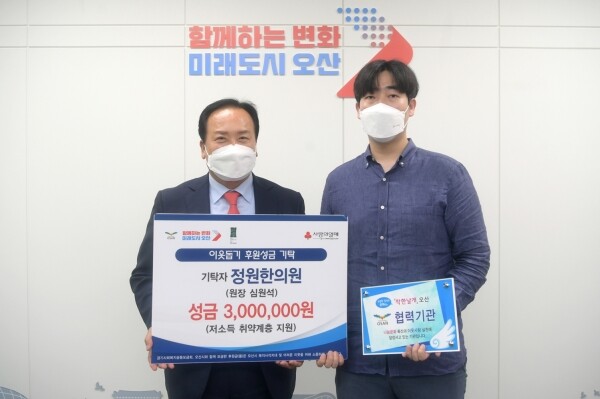 이날 심원석 원장은 “코로나19로 저소득 가정에게 도움을 보태고자 성금을 기탁하게 됐고 이번 계기로 지속적으로 어려운 이웃 분들을 돕기 위해 나눔 문화에 동참하겠다”고 소감을 말했다.