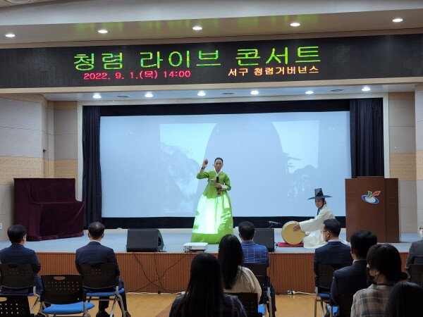 특히 이번 공연은 서구청 유튜브 채널인 ‘서구TV’로도 실시간 생중계돼 많은 공직자들이 함께 참여할 수 있는 기회를 제공했다.