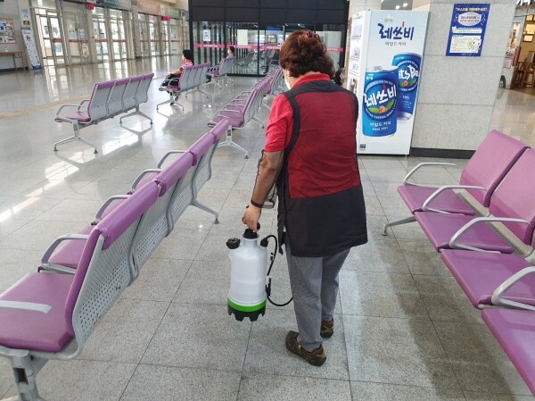 버스 터미널 이용객은 전국으로 이동하기에 코로나19 확산 방지를 위한 방역관리의 최우선 시설물이다.