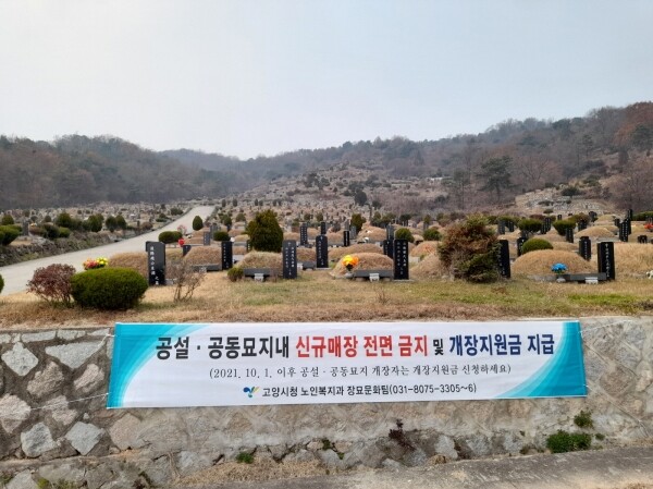 고양시는 공설·공동묘지 신규매장을 전면 금지하고 개장지원금 지급으로 점진적으로 공동묘지의 분묘 기수를 축소함으로써 장기적으로 공설·공동묘지의 공원화·현대화를 추진하는 중이다.