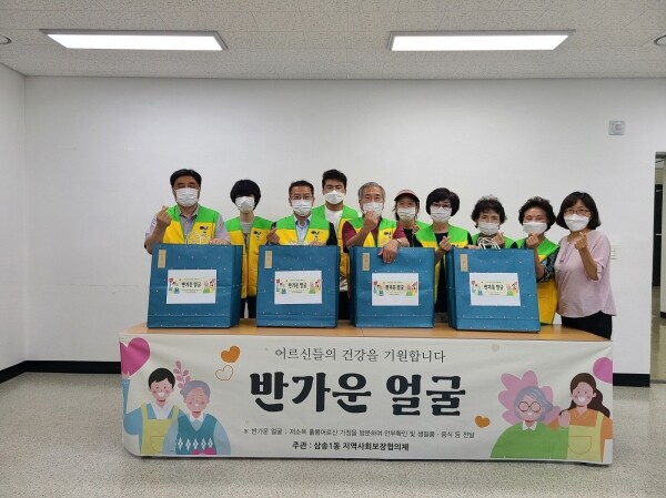 삼송1동 지역사회보장협의체는 특화사업으로 홀몸어르신가구의 고독사를 방지하고 사회적 돌봄을 강화하기 위해 매분기 지역사회보장협의체 위원과 행정복지센터 직원이 함께 조별로 나누어 어르신 안부 확인차 가정방문하며 식품 및 생활용품을 전달하는 ‘반가운 얼굴사업’ 을 추진하고 있다.
