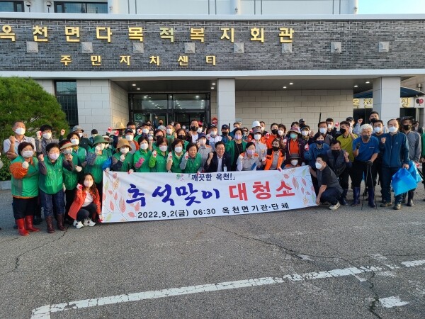 이번 대청소는 추석 귀성객 맞이와 옥천면을 흐르는 사탄천 일원의 수해 쓰레기를 청소해 ‘깨끗한 옥천을 만들자’는 취지로 추진되어 옥천면 이장 협의회, 새마을협의회, 주민자치위원회, 자율방범대, 의용소방대, 바르게살기협의회 등 단체와 농협, 파출소, 우체국 등 기관이 함께 모여 진행됐다.