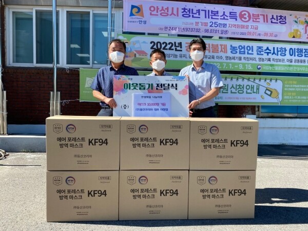 이상인 원곡면장은 “추석을 앞두고 코로나 확진자가 다시 증가하고 있어 지역 주민들의 우려가 커지고 있는 시기에 마스크를 기부해주신 동산코리아 이창엽 대표님께 감사인사를 드리고 싶다”며 “앞으로도 원곡면과 취약계층 주민들에 대해 많은 관심과 후원을 부탁드린다”고 전했다.