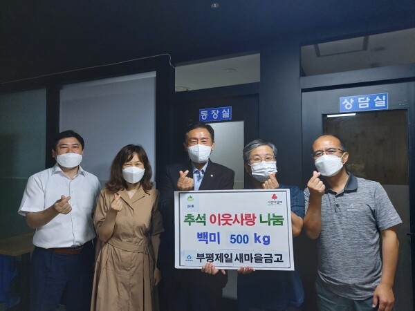 류대희 부평제일새마을금고 이사장은 “요즘 경기가 안 좋은 상황에도 불구하고 지역사회의 소외된 이웃들에게 따뜻한 추석 명절을 맞이하는 데 조금이나마 보탬이 되길 바란다”고 말했다.