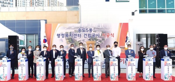2024년 상반기 준공을 목표로 첫 삽을 뜬 송도5동 행정복지센터는 2천8.5m2 부지에 143억원의 예산을 투입해 지하1층 지상4층, 연면적 4천611.02m2 규모로 건립될 예정이다.