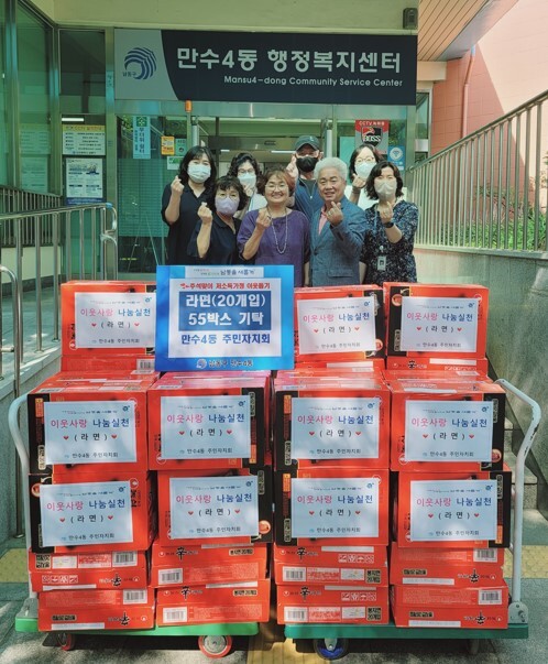 작년에 이어 올해도 라면을 쾌척한 만수4동 주민자치회는 라면 나눔 외에도 출생신고자 격려 물품 지원, 주민총회 개최, 코로나19 방역 활동 등 지역사회 발전을 위한 다양한 활동에 앞장서고 있다.