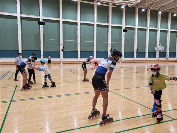 은평구청 소속 인라인롤러 선수들이 직접 지도에 나서 청소년을 대상으로 인라인롤러 기초 자세와 기술 등을 가르치는 수업을 진행한다.