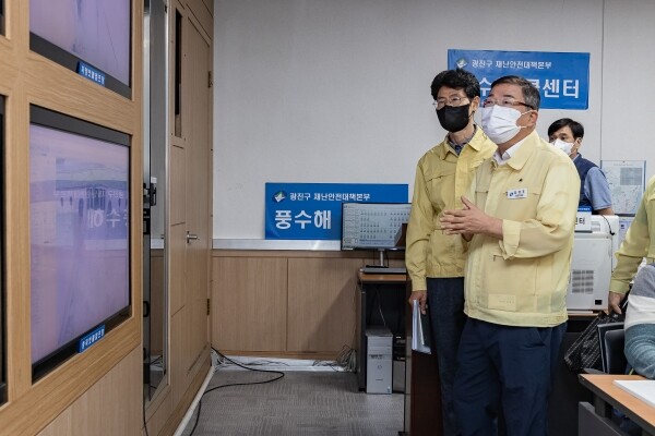 김경호 광진구청장은 5일 힌남노 북상에 따라 재난안전대책본부를 방문해 수방 상황을 보고받고 지역 내 빗물펌프장, 군자역 주변 저지대, 공사장, 중랑천 주변 산책로 아차산 등산로 긴고랑 사방댐 침사지 등을 찾아 시설물의 안전을 점검했다.
