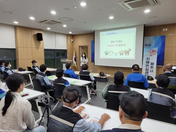 교육은 운정3동 실버경찰대원의 건강한 노후 맞이를 위해 마련됐으며 파주시 건강증진센터에서 근무하는 차재현, 남진경 강사를 초빙해 진행했다.