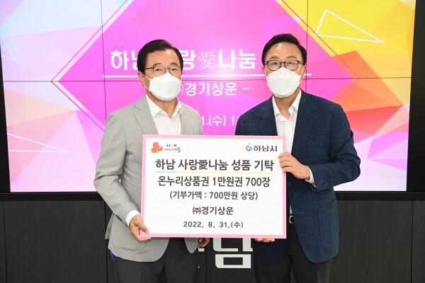 이날 기탁식에는 이현재 시장을 비롯해, ㈜경기상운 권오성 경영지원본부장, 한동규 부장이 참석했다.