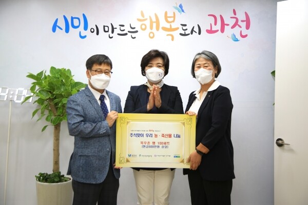 6일 과천시에 따르면, NH농협 과천시지부에서는 600만원 상당의 선물세트 100세트를, 대한전문건설협회 과천시협의회에서는 200만원의 기부금을 각각 전달했다.