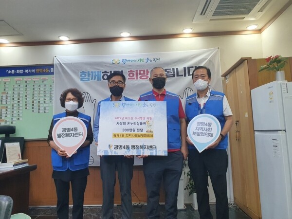 나준현 광명4동 지역사회보장협의체 위원장은 “상품권을 전달하며 이웃을 만나 안부를 확인할 수 있고 지역경제 활성화에도 도움을 줄 수 있어 뜻깊게 생각한다”고 말했다.