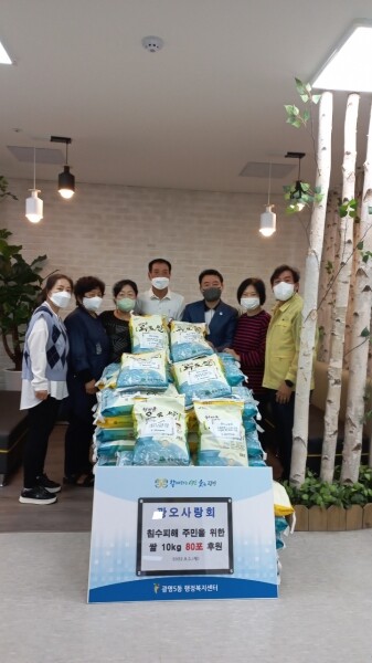 박승국 광명5동장은 “침수피해로 힘든 나날을 보내고 있는 주민들이 따뜻한 한가위를 보낼 수 있도록 나눔을 실천해 주신 광오사랑회에 감사드린다”며 “광명5동 주민 모두가 즐거운 명절을 보내시길 바란다”고 전했다.