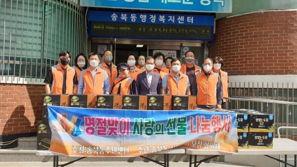 한편 송북동 지역사회보장협의체는 4년째 설, 추석 명절에 소외되기 쉬운 취약계층을 대상으로 선물꾸러미 전달식을 지속적으로 해오고 있으며 다양한 봉사와 기부를 통해 지역사회에 따뜻한 나눔문화 확산에 힘쓰고 있다.