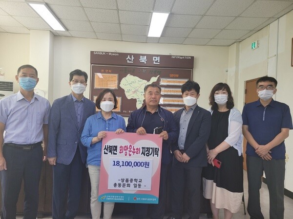 한지연 산북면장은 “상품중학교총동문회의 지역사랑의 마음이 동문들과 수해민들의 아픔을 덜어주고 더욱 공고한 지역발전의 초석이 될 것으로 기대한다”고 답했다.