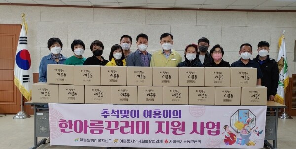 ‘추석맞이 여흥이의 한아름꾸러미 지원’ 사업은 명절에 외로이 지내실 저소득 취약계층 가구에 영양국, 전복죽, 육개장, 밑반찬, 통조림식품 등 16종 물품으로 구성한 식품꾸러미를 여흥동지역사회보장협의체 위원이 각 가정에 전달하고 어르신의 안부 확인 및 정서적 안정을 도모하는 사업이다.