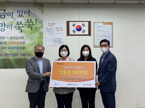 이날 전달식에는 국민연금공단 평택안성지사와 평택행복나눔본부, 팽성노인복지관, 에바다장애인종합복지관 등이 참석해 상품권을 전달받고 감사 인사를 나눴다.