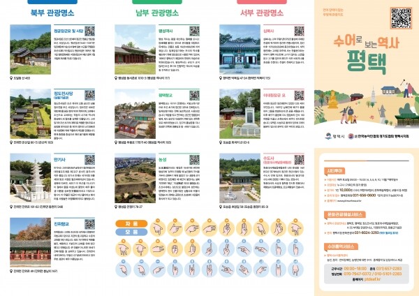 평택시 문화유적지 10곳을 선정해 농인에게 역사적인 정보를 올바르게 전달하고자 많은 회의와 답사를 통해 제작했으며 수어관광지도에 있는 QR코드를 찍으면 수어해설영상과 자막을 볼 수 있다.