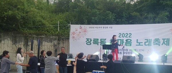 이번 행사는 장록동 마을자치회와 부녀회, 청년회가 협력해 노래축제에 참여한 마을주민들을 위해 음식을 마련하고 마을주민 특성에 맞는 행사 프로그램을 기획·실현함으로써 마을공동체의 의미를 되살리는 기회가 됐다.